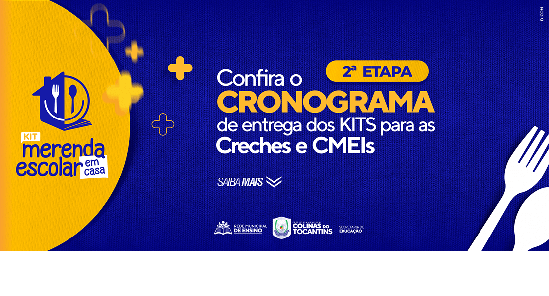 A Prefeitura de Colinas (TO), por meio da Secretaria de Educação, irá distribuir mais de 1300 kits, do projeto ?Kit Merenda Escolar em Casa? entre os dias 16 e 20 de dezembro. Irá receber o kit, o aluno que estiver devidamente matriculado na Educação Infantil.