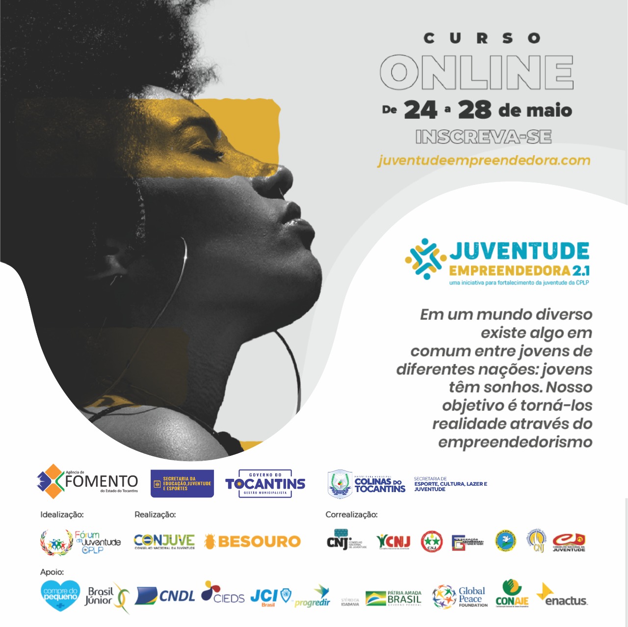 A Prefeitura de Colinas (TO), por meio da Secretaria de Esporte, Cultura, Lazer e Juventude de Colinas do Tocantins participa do Programa Juventude Empreendedora Online, do Governo do Federal. Todos os jovens colinenses podem participar gratuitamente entre os dias 24 e 28 deste mês.