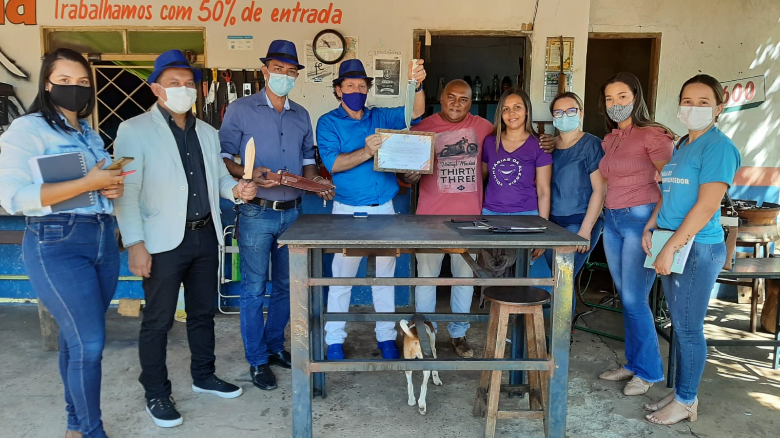 As equipes visitaram também a JD Cutelaria no Bairro Santa Rosa onde é fabricado artesanalmente facas personalizadas, o empreendedor recebeu orientações sobre a formalização MEI e as garantias previdenciárias que pode ter com a formalização.