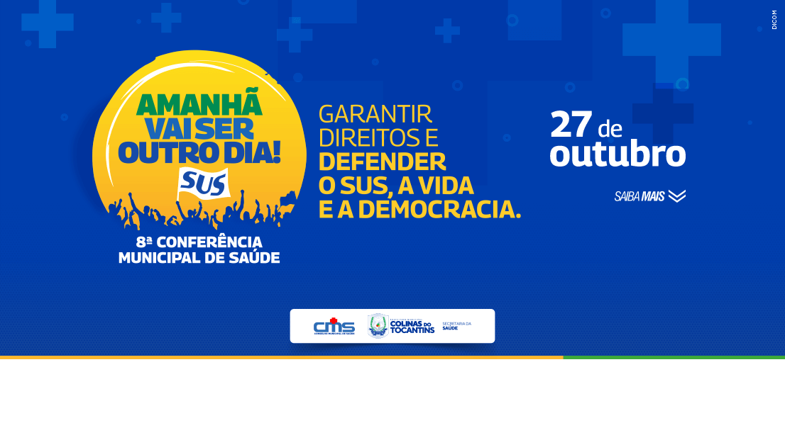 A Prefeitura de Colinas, por meio da Secretaria Municipal de Saúde, convida toda a população para participar da 8ª Conferência Municipal de Saúde, que acontecerá nesta quinta-feira, 27, a partir das 8h da manhã, no auditório da Câmara Municipal de Colinas, com o tema ?Garantir Direitos e Defender o SUS, a Vida e a Democracia?.